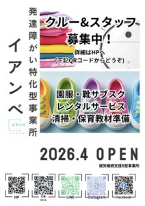 目次 就労継続支援B型 イアンベ開所クルー募集スタッフも大募集!就労継続支援B型 イアンベ開所 来春開所にむけて鋭意活動中! イアンベでは、クルー(利用者)とスタッフを募集しています。 クルー募集 発達障がいの方で、お仕 […]