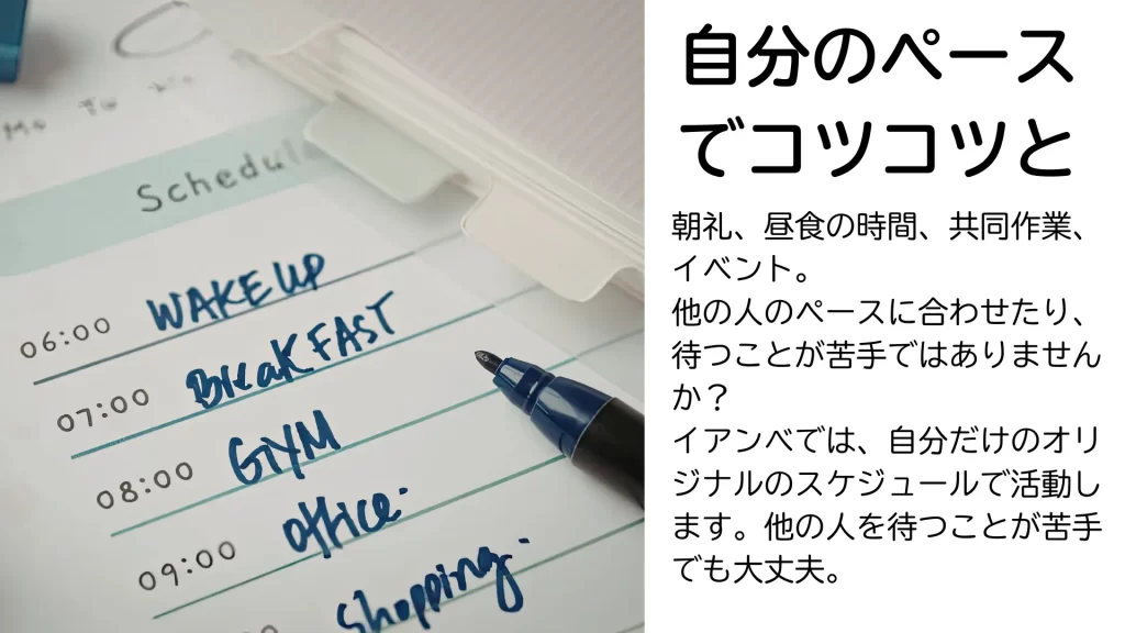イアンべでは、みんなで同じスケジュールで活動しません。